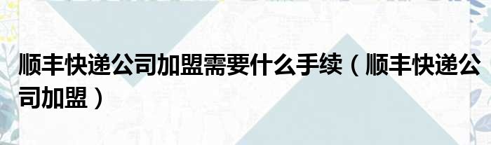 順豐快遞公司加盟需要什么手續(順豐快遞公司加盟)