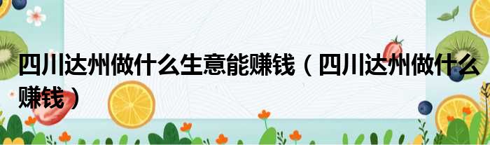 四川達州做什么生意能賺錢(四川達州做什么賺錢)