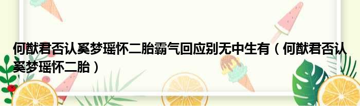 何猷君否認奚夢瑤懷二胎霸氣回應別無中生有(何猷君否認奚夢瑤懷二胎)