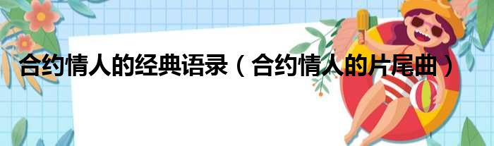 大家好,小霞來為大家解答以上的問題。合約情人的經典語錄,合約情人的片尾曲這個很多人還不知道,現在讓我們一起來看看吧!