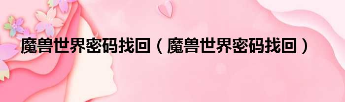 魔獸世界密碼找回(魔獸世界密碼找回)
