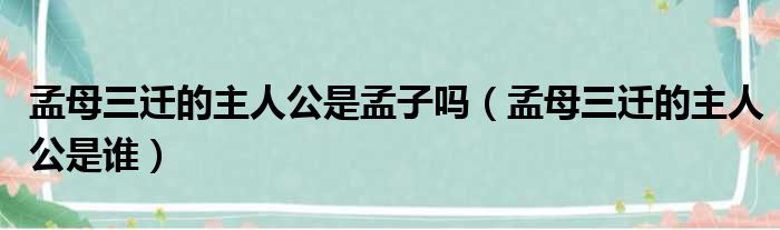 孟母三遷的主人公是孟子嗎(孟母三遷的主人公是誰)