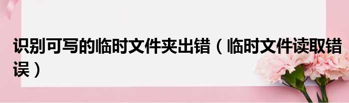 大家好,小霞來為大家解答以上的問題。識別可寫的臨時文件夾出錯,臨時文件讀取錯誤這個很多人還不知道,現在讓我們一起來看看吧!
