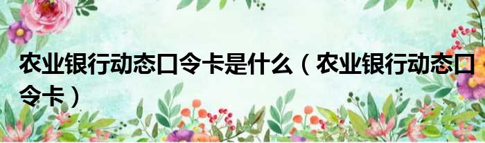 農業銀行動態口令卡是什么(農業銀行動態口令卡)