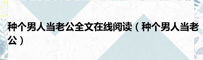 大家好,小霞來為大家解答以上的問題。種個男人當老公全文在線閱讀,種個男人當老公這個很多人還不知道,現在讓我們一起來看看吧!