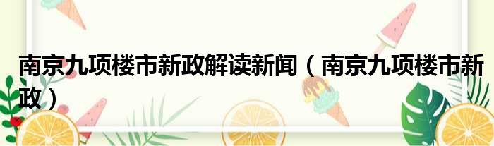 南京九項樓市新政解讀新聞(南京九項樓市新政)