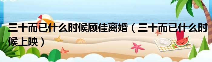 三十而已什么時候顧佳離婚(三十而已什么時候上映)