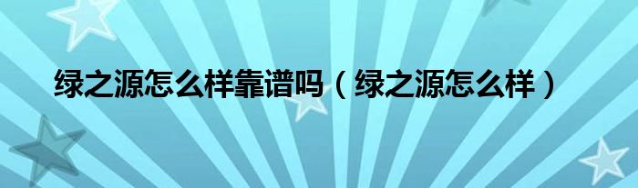 綠之源怎么樣靠譜嗎(綠之源怎么樣)