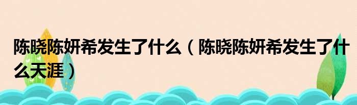 陳曉陳妍希發生了什么(陳曉陳妍希發生了什么天涯)