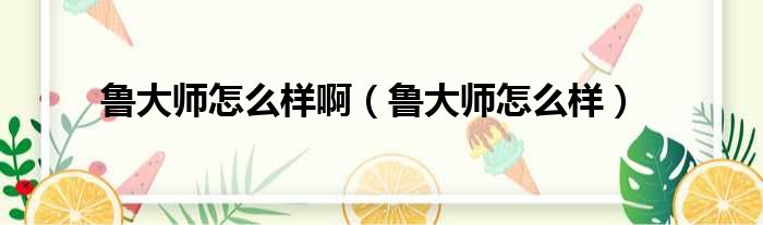 大家好,小霞來為大家解答以上的問題。魯大師怎么樣啊,魯大師怎么樣這個很多人還不知道,現在讓我們一起來看看吧!