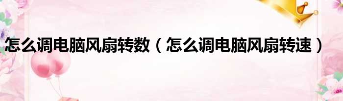 怎么調電腦風扇轉數(怎么調電腦風扇轉速)