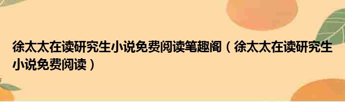 徐太太在讀研究生小說免費閱讀筆趣閣(徐太太在讀研究生小說免費閱讀)