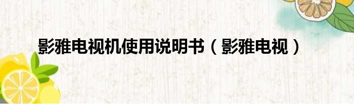 影雅電視機使用說明書(影雅電視)