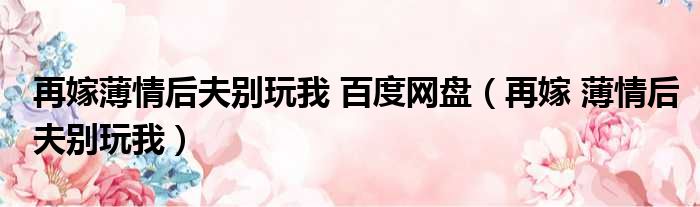 再嫁薄情后夫別玩我 百度網盤(再嫁 薄情后夫別玩我)