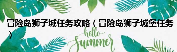 導讀 大家好,小霞來為大家解答以上的問題。冒險島獅子城任務攻略,冒險島獅子城堡任務這個很多人還不知道,現在讓我們一起來看看吧!1、這里說的