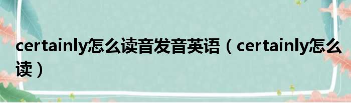 certainly怎么讀音發音英語(certainly怎么讀)