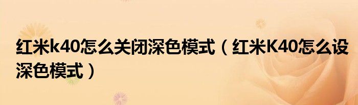 紅米k40怎么關閉深色模式(紅米K40怎么設深色模式)