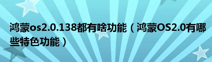 鴻蒙os2.0.138都有啥功能(鴻蒙OS2.0有哪些特色功能)