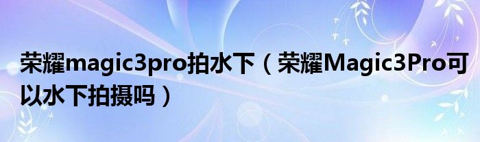 榮耀magic3pro拍水下(榮耀Magic3Pro可以水下拍攝嗎)
