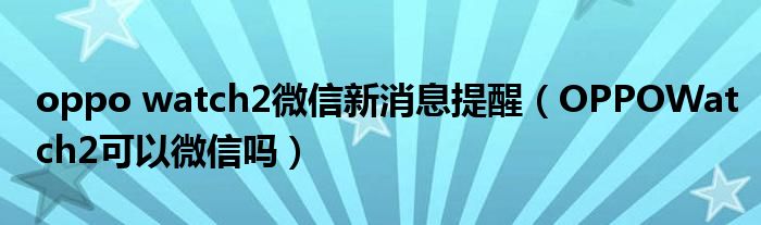 導讀 大家好,小迷為大家解答以上oppo watch2微信新消息提醒,OPPOWatch2可以微信嗎的問題,也是到網上收集了關于oppo watch2微信新消息提醒,