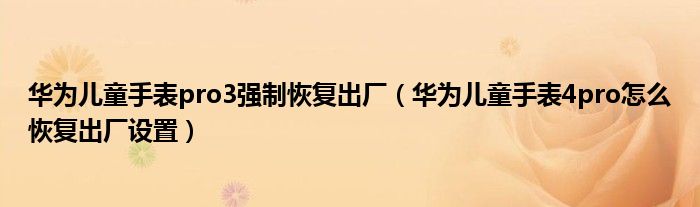 華為兒童手表pro3強制恢復出廠(華為兒童手表4pro怎么恢復出廠設置)