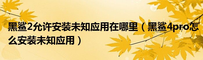 黑鯊2允許安裝未知應用在哪里(黑鯊4pro怎么安裝未知應用)
