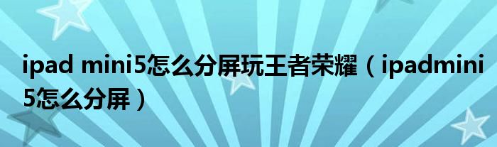 ipad mini5怎么分屏玩王者榮耀(ipadmini5怎么分屏)