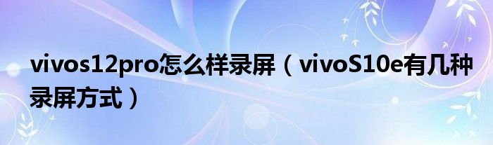 vivos12pro怎么樣錄屏(vivoS10e有幾種錄屏方式)