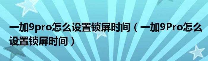 一加9pro怎么設置鎖屏時間(一加9Pro怎么設置鎖屏時間)