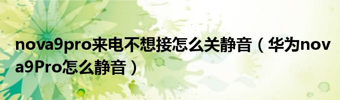 nova9pro來電不想接怎么關靜音(華為nova9Pro怎么靜音)