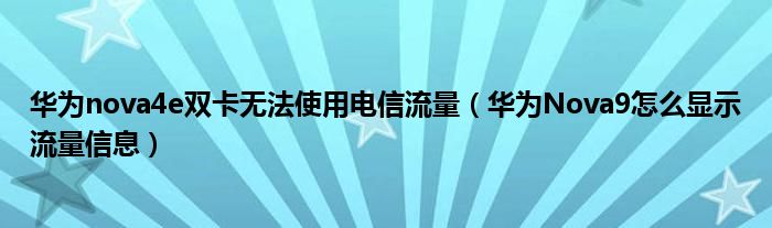 導讀 大家好,小迷為大家解答以上華為nova4e雙卡無法使用電信流量,華為Nova9怎么顯示流量信息的問題,也是到網上收集了關于華為nova4e雙卡無法