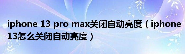 iphone 13 pro max關閉自動亮度(iphone13怎么關閉自動亮度)