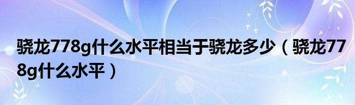 驍龍778g什么水平相當于驍龍多少(驍龍778g什么水平)