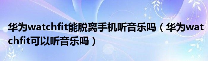 華為watchfit能脫離手機聽音樂嗎(華為watchfit可以聽音樂嗎)