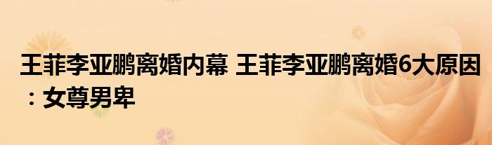【王菲李亞鵬離婚內幕 王菲李亞鵬離婚6大原因:女尊男卑】詳情如下: