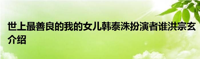 1、世上最善良的我的女兒韓泰洙扮演者誰?洪宗玄介紹