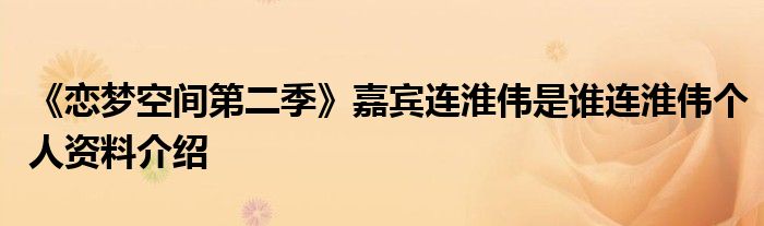 【《戀夢空間第二季》嘉賓連淮偉是誰連淮偉個人資料介紹】詳情如下: