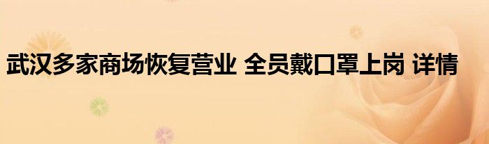 【武漢多家商場恢復營業 全員戴口罩上崗 詳情】詳情如下: