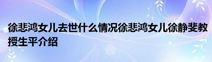 【徐悲鴻女兒去世什么情況徐悲鴻女兒徐靜斐教授生平介紹】詳情如下: