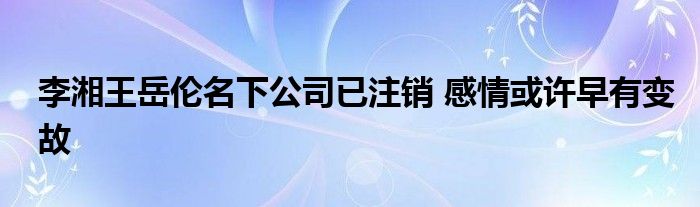【李湘王岳倫名下公司已注銷 感情或許早有變故】詳情如下: