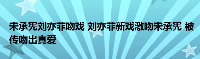 【宋承憲劉亦菲吻戲 劉亦菲新戲激吻宋承憲 被傳吻出真愛】詳情如下: