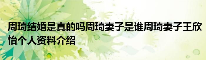 【周琦結婚是真的嗎周琦妻子是誰周琦妻子王欣怡個人資料介紹】詳情如下: