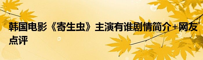 【韓國電影《寄生蟲》主演有誰劇情簡介+網友點評】詳情如下: