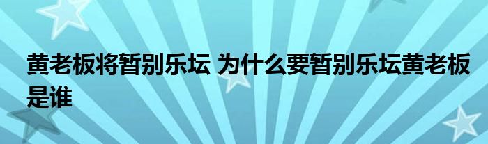 【黃老板將暫別樂壇 為什么要暫別樂壇黃老板是誰】詳情如下: