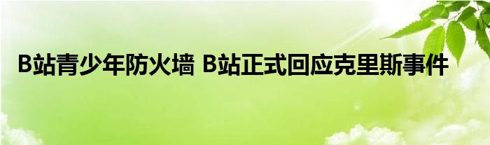 【B站青少年防火墻 B站正式回應克里斯事件】詳情如下: