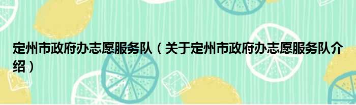 定州市政府辦志愿服務隊(關于定州市政府辦志愿服務隊介紹)