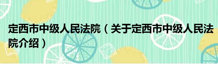 定西市中級人民法院(關于定西市中級人民法院介紹)