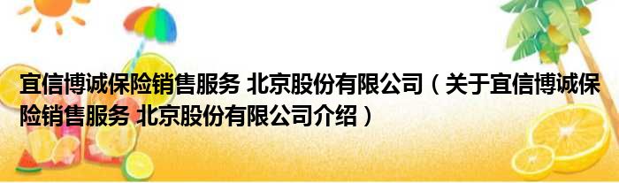 宜信博誠保險銷售服務 北京股份有限公司(關于宜信博誠保險銷售服務 北京股份有限公司介紹)