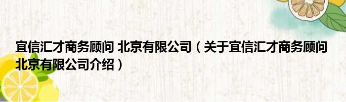 宜信匯才商務顧問 北京有限公司(關于宜信匯才商務顧問 北京有限公司介紹)