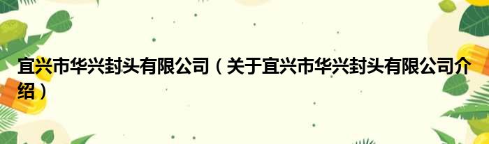 宜興市華興封頭有限公司(關于宜興市華興封頭有限公司介紹)